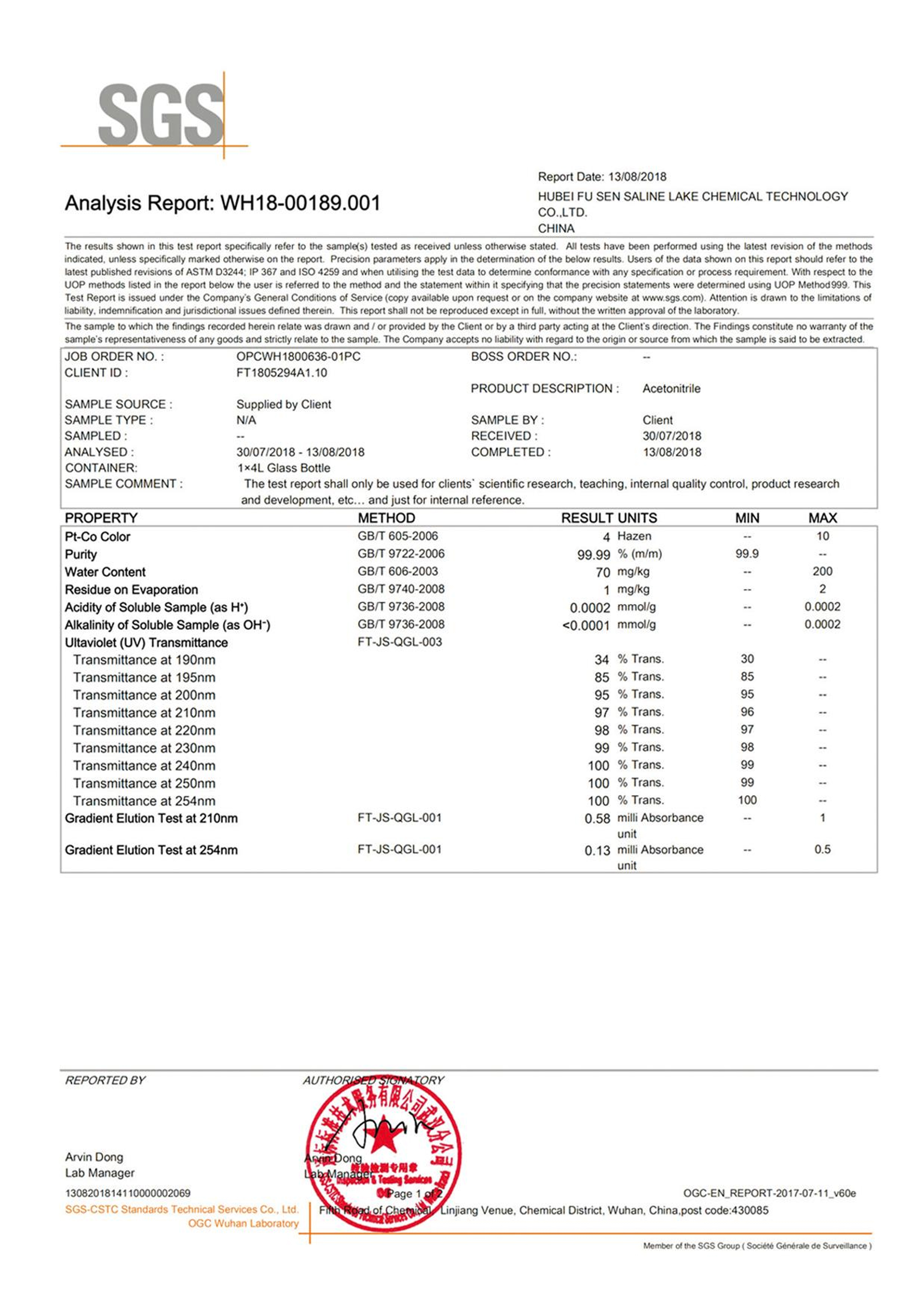 授权书 乙腈 甲醇